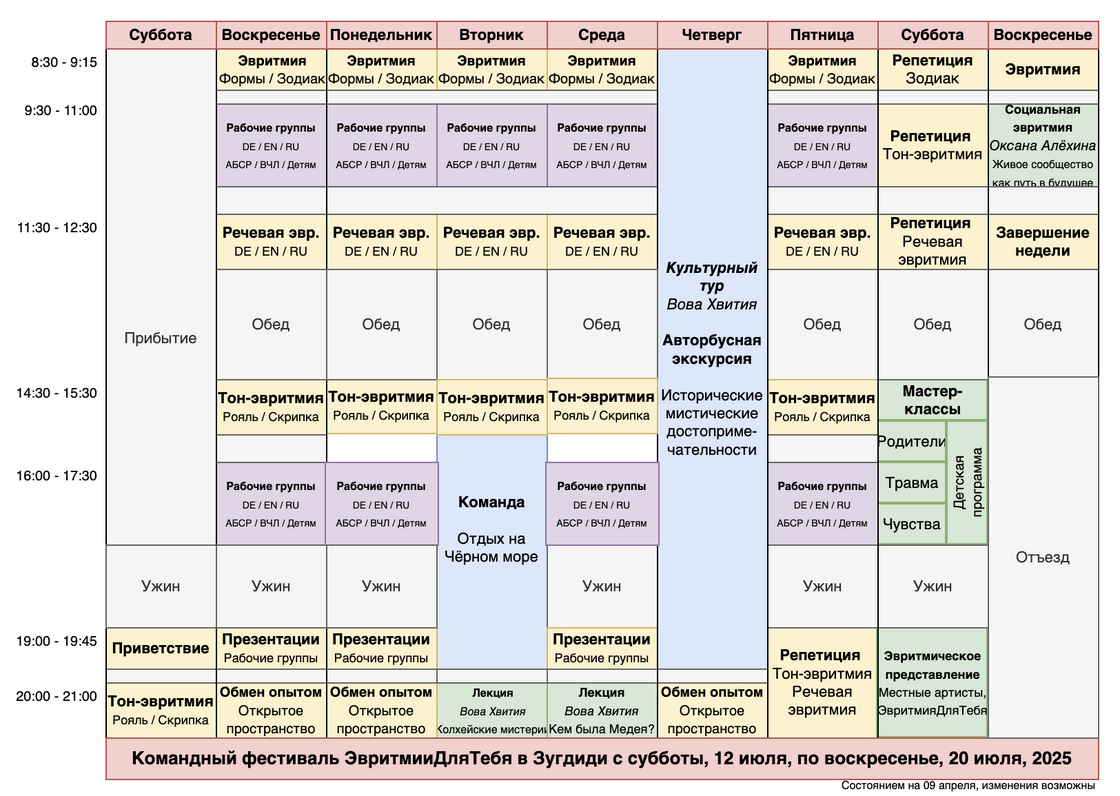 Чтобы и дальше способствовать этому качественному развитию и утвердить эвритмию на высоком уровне по всему миру, мы планируем снова встретиться в Зугдиди с 1 по 9 августа 2026 года. Эта следующая встреча будет целенаправленно посвящена углублению и дальнейшему развитию стандартов качества в эвритмии.